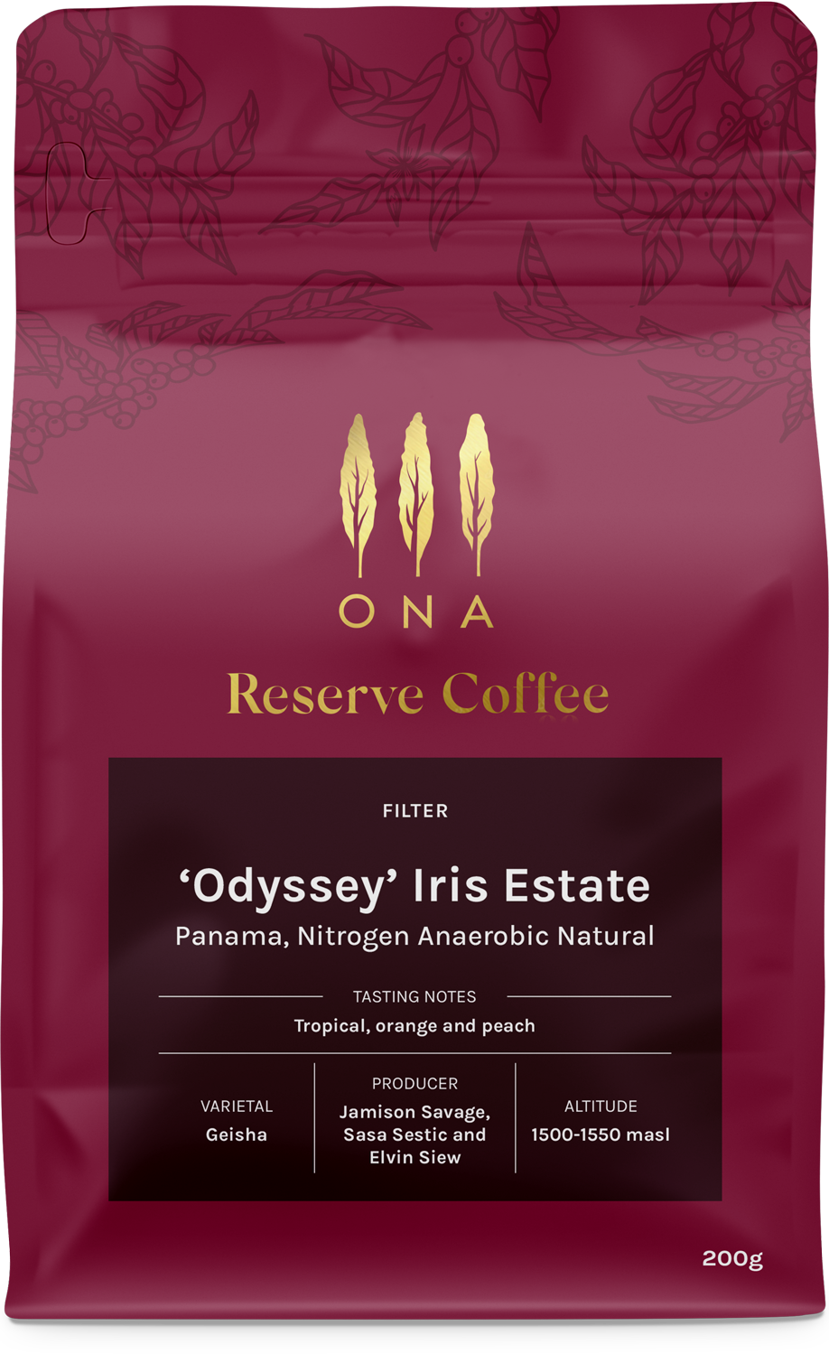 This Nitrogen Anaerobic Natural processed Geisha from Iris Estate transitions through several sweet fruit notes, including ripe peach, orange and tropical fruits.