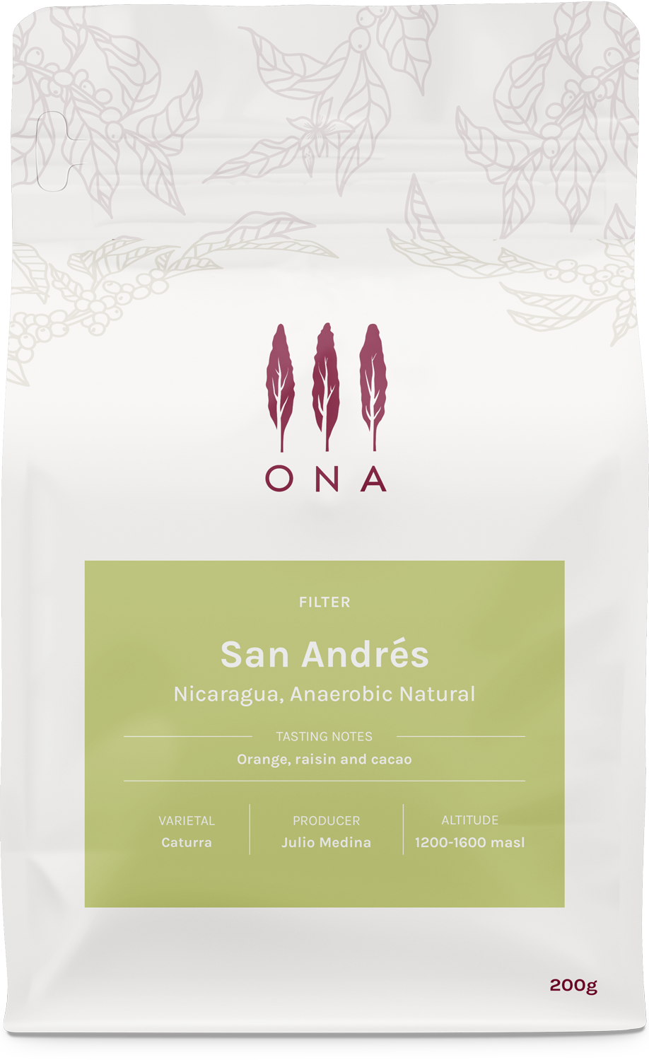 Finca San Andrés, nestled in the misty highlands of Dipilto, Nueva Segovia, is a family-run estate managed by Julio Medina. For generations, Julio's family has cultivated coffee on these slopes, benefiting from the region's fertile clay soils and cool microclimates, which are ideal for high-quality coffee production. Working closely with Cafetos de Segovia, an exporter founded by Ana and Martha Albir Sotomayor, Julio receives support in agronomic training and post-harvest innovation. His focus on refining fermentation practices has led to the creation of an Anaerobic Natural microlot, showcasing the distinctive sweetness and structure of the Caturra variety. This meticulous approach has positioned Finca San Andrés as a key player in producing exceptional coffees that capture the essence of Nueva Segovia's rich coffee heritage.