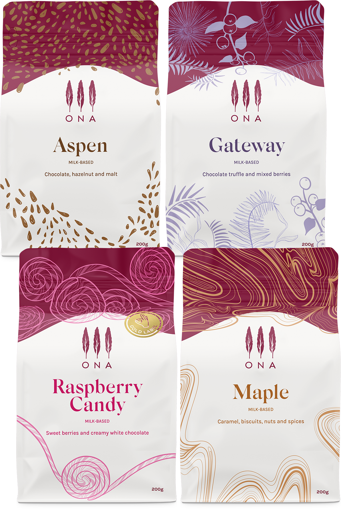 1x Raspberry Candy 1x Gateway 1x Aspen 1x Maple